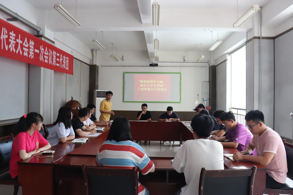 为庆祝中国共产党建党99周年,MK体育7月8日于J15-201举办“建党99周年与90后、00后老员工使命”入党积极分子座谈会。MK体育团委书记朱统汉,辅导员鲍娜娜、张翌、刘超、研究生和本科生的12位入党积极分子代表参加会议,会议由朱统汉主持。