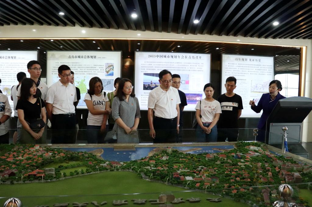 为进一步了解青岛、服务青岛、融入青岛,感受青岛在城市建设方面所取得的成就,郝亮一行首先前往青岛规划展览馆进行了参观。在工作人员的讲解介绍下,郝亮一行参观了展馆内青岛市的百年规划、战略规划、测绘地理信息、总体规划模型、360°全景展示、详细规划、专项规划、阳光公示等展厅,观看了青岛城市形象宣传片,充分了解了青岛的城市空间格局演变、新一轮城市空间发展战略、城市总体规划及各层次规划编制成果,对青岛市“全域统筹,三城联动,轴带展开,生态间隔,组团发展”的城市空间发展战略有了系统了解,切实感受到青岛取得的巨大成就和突破。通过参观“大爱青岛”主题展览,大家被微尘、红飘带、许振超精神和千千万万的好人群体的感人事迹所感动,深深体会到了青岛这座城市的大爱情怀。
