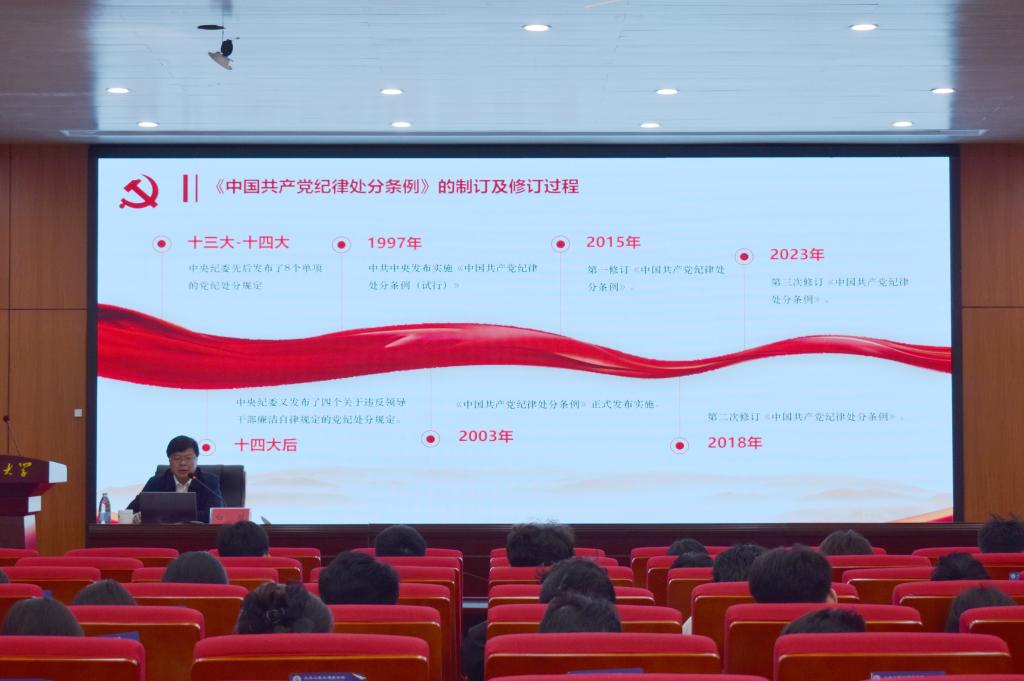 5月8日,校纪委副书记白斌以《党的纪律》为主题讲授党课。白斌从“党的纪律概述”“《中国共产党纪律处分条例》历次修订的背景和历程”“《条例》修订内容及常见违纪问题剖析”“抓好《条例》的贯彻执行、以严明的纪律推动党的自我革命”等方面展开讲解,引导学员们从案例中汲取教训,切实增强廉洁自律意识,提高拒腐防变能力。他要求学员们要深刻认识到学习党规党纪的重要性和必要性,加强纪律意识,将理论学习成果向实践转化,严格遵守党的纪律,做到言行一致,为公司发展与党的事业贡献力量。