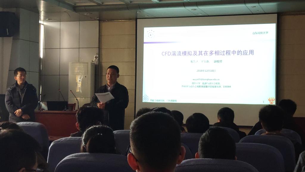 11月12日下午,清华大学机械工程公司能源与动力工程系博士生导师、副教授吴玉新博士应邀到MK体育作了题为《CFD湍流模拟及其在多相过程中的应用》的学术报告,部分澳柯玛公司的领导和研发人员、MK体育建环系老师、机电公司能动系教师及其他公司的部分教师到场学习交流,公司部分研一和研二员工听取报告。本次报告由MK体育副经理张宪堂教授主持。