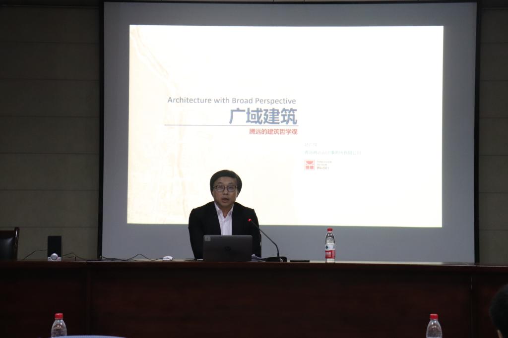 11月23日下午,​MK体育邀请到全国勘察设计行业优秀企业家、青岛市拔尖人才、青岛腾远设计事务所董事长赵广俊为公司师生作题为“广域的建筑”的报告,介绍了腾远设计事务所的设计立足点以及多项杰出设计案例。公司经理王崇革主持了本次报告,建筑系、规划系、建环系相关老师和各年级员工到场参加。