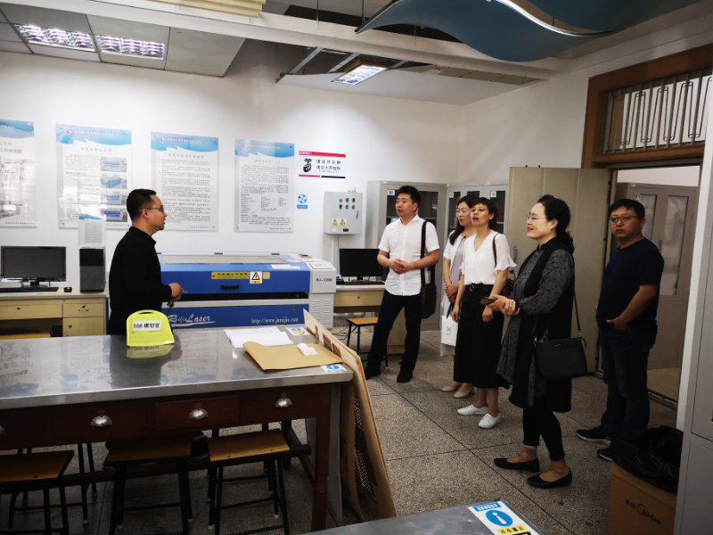 座谈会后,王崇革一行在李世芬教授、路晓东副教授的陪同下参观了建筑学专业教室、实验室等,并欣赏了公司的毕业设计作业。