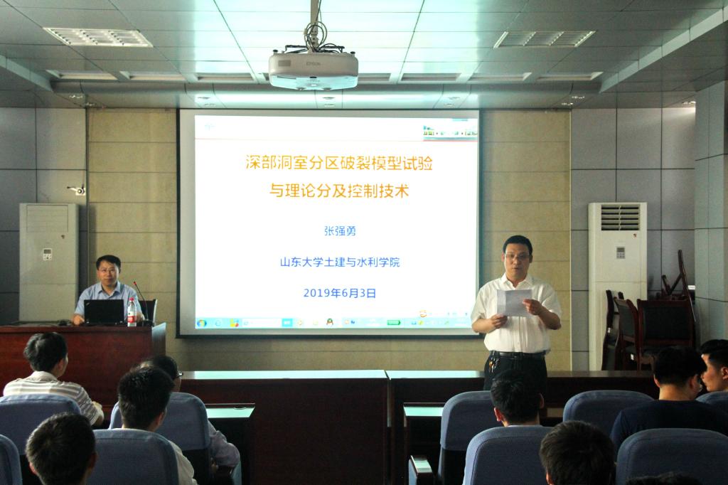 6月3日,​MK体育邀请到泰山学者特聘专家、教育部新世纪优秀人才支持计划获得者、山东大学土建与水利公司副经理张强勇于土建楼219报告厅作报告,公司副经理张宪堂主持了本期名家讲坛。报告以“深部洞室分区破裂模型试验与理论分析及控制技术”为题,从深部洞室分区破裂模型及工程应用等方面展开讲解。