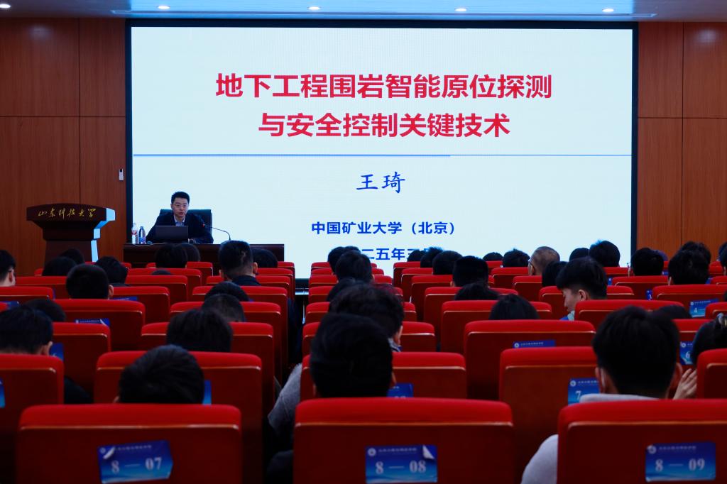王琦教授以“能源革命与人工智能的共生关系”为切入点,围绕“地下工程围岩智能原位探测与安全控制技术”主题,系统展示了团队在深部岩体力学行为分析、智能监测装备研发及工程应用中的创新成果,重点介绍了基于旋切钻进理论的数字解析钻头、岩体数字钻进测试系统等重大技术成果。讲座尾声,王琦教授深情回顾了在MK体育官网的求学经历,以“培育感恩传承”为主线,分享了导师对其科研道路的深远影响。王琦教授结合自身从员工到科研工作者的蜕变历程,勉励在场青年学子珍惜学习机会,深耕专业领域核心问题,让研究成果转化为技术进步的阶梯。
