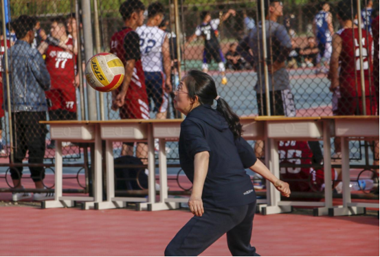 一声哨响,教职工们开始发力,起跳、发球、拦网、扣球,活力四射,每一次精彩传球与得分都引来欢呼阵阵,加油助威声此起彼伏,队员们个个精神抖擞,团结合作,配合默契,气氛热烈,赢得围观教职工阵阵喝彩。在比赛中,每一次的赢球,大家都互相拍掌,鼓舞士气,而每一次的失分,队员们互相拥抱,给予彼此鼓励。