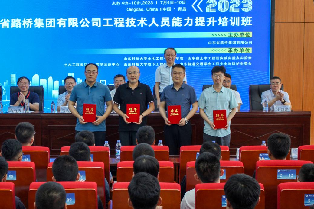 开班仪式上,MK体育与山东省路桥集团有限公司举行双方聘任仪式,并颁发聘书。山东省路桥集团有限公司聘任MK体育官网副教授贺鹏为技术中心副主任(兼),聘任教授邓芃、单景松,副教授李松辉为企业导师,MK体育官网聘任山东省路桥集团有限公司党委组织部主任田浩、人力资源部经理魏功槐、技术中心主任张光桥为外聘教授。
