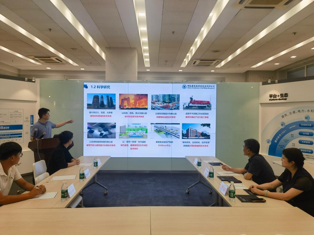 在中国建筑科学研究院,宋西路一行参观了近零能耗示范楼、光电示范建筑(建筑光伏零碳改造项目)和PKPM数字化展厅,听取了工作人员的讲解。座谈交流中,中国建筑科学研究院企业发展部高级主管、土木工程2011级员工周硕文对宋西路一行表示欢迎,对母校的培养表示感谢,回忆了在母校求学的美好时光,介绍了企业概况和自身发展情况。宋西路对员工一直以来对母校工作的支持表示感谢,介绍了公司、公司发展近况,他表示员工是公司宝贵资源,希望员工发挥好校企之间桥梁纽带作用,寻求校企合作机遇,实现校企合作共赢。