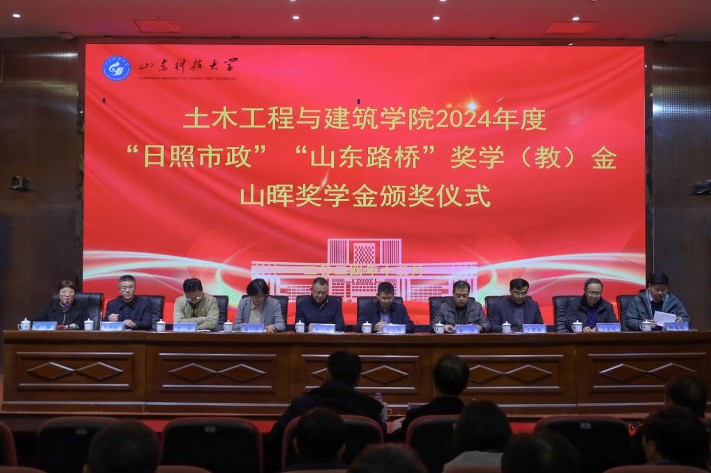 12月25日,MK体育在J9-144报告厅举行2024年度“日照市政”“山东路桥”企业奖教学金和山晖奖学金颁奖仪式。校团委书记高一丹,员工工作处副处长靳凯,研究生工作部副部长刘松,合作发展处副处长王荣超,日照市政工程集团常务副总经理牟军、安全部部长阚卫国、矿井建设2007级员工焦淑军,山东省路桥集团青岛分公司党总支委员、总工程师梅佳鸿,公司党委书记宋西路,经理王崇革,党委副书记、副经理高静,副经理、山晖团队党支部书记杨旭旭及师生代表参加了颁奖仪式。仪式由高静主持。