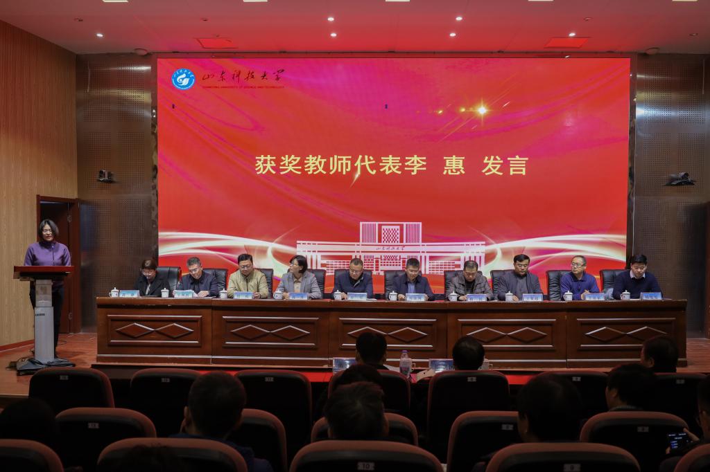 “日照市政奖教金”获得者、地下工程系教师李惠副教授在发言中对企业关心教育事业表示感谢,分享了自己从事教育工作的心得体会,表达了自己对教育的敬畏之心和对员工的热爱之情。获奖员工代表闫楚东在发言中对公司老师的辛勤培养和企业领导的关心鼓励表示衷心感谢,并承诺要坚定理想信念,勇担时代重任,常怀感恩之心,传承老一辈土建人踏实勤勉,坚韧不拔的精神,以实际行动践行“惟真求新”的校训。