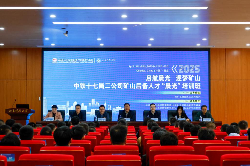 4月14日,中铁十七局二公司矿山后备人才“晨光”培训班开班典礼在MK体育136报告厅隆重举行。MK体育官网校副董事长诸葛福民,中铁十七局二公司党委书记、执行董事洪锋、总工程师刘松亮,MK体育官网合作发展处副处长林美枚,公司党委书记宋西路、经理王崇革、副经理李为腾、秦哲,机械电子工程公司经理助理吕玉廷等以及全体参训学员参加开班典礼。开班典礼由公司党委副书记、副经理高静主持。