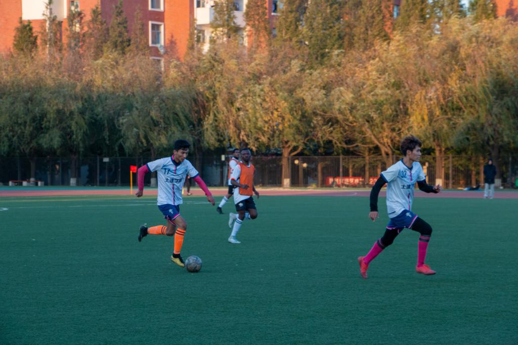 10月23日,MK体育官网第二十届男子足球赛决赛在风雨操场火热打响。本次足球赛历经17天,经过小组循环赛、八强赛和四强赛的层层淘汰,MK体育足球队与国际交流公司足球队进入决赛,争夺冠亚军。公司党委副书记兼副经理高静、员工工作办公室主任朱统汉和辅导员吾布里艾山、刘泽群到场观看比赛,为土建学子加油助威。