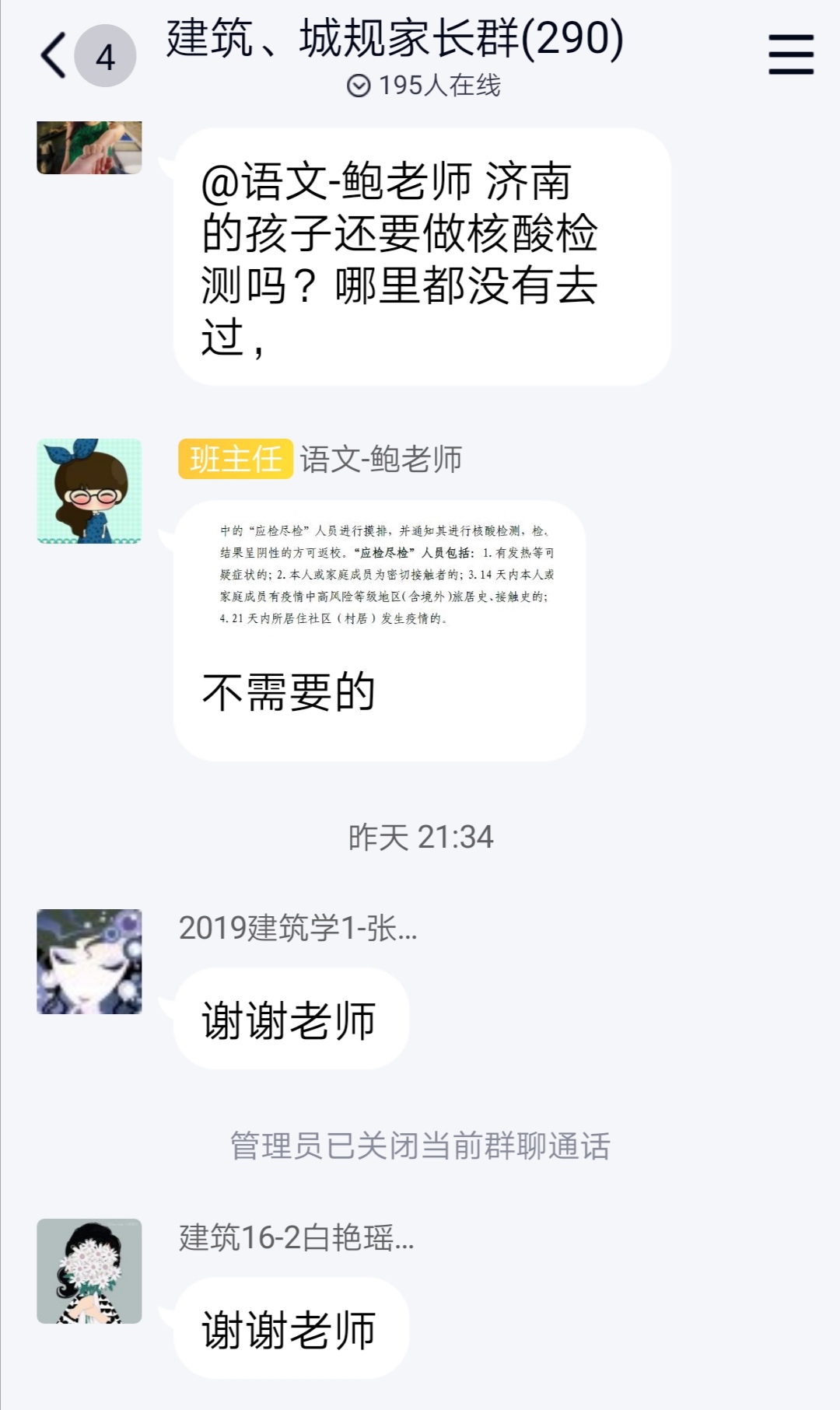 首先,鲍娜娜针对首次家校会议作出相关部署,并向家长们详细介绍近年来建筑学与城乡规划专业的发展与员工动态,使员工家长更好的了解员工校园生活以及对员工的未来规划。同时,为确保2020年秋季学期公司全面复学复课,开学工作平稳有序,鲍娜娜向家长们讲解了秋季学期开学前有关工作的相关事宜,如返校师生员工重点人群摸排与核酸检测工作的运行、全省教育系统疫情防控平台信息填报工作、员工返校工作分期分批有序进行以及相关物资储备和条件保障疫情防控的加强工作等。针对于2019年9月份山东省关于高校学费缴纳办法变动的通知,辅导员向家长们介绍学分制学费分为专业注册与学分收费,其中专业注册学费在每学期初进行收费,提醒家长员工们做好按时缴费工作。