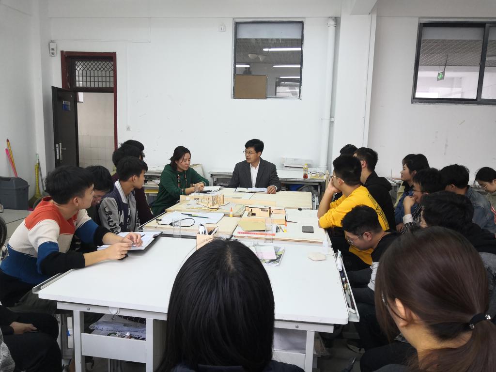 11月1日,公司资产处处长苏同营在辅导员鲍娜娜的陪同下深入其对接的建筑学2018-1班级,在J15-419室与全体员工进行了面对面交流。