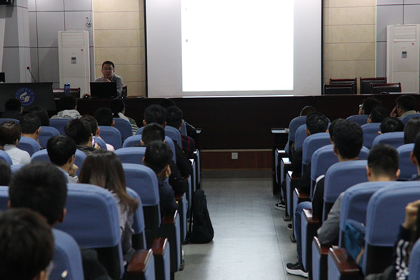 朱庆文围绕专利从五部分展开了讲解:概括介绍专利的基本信息,主要对专利分类、各类型专利的特点及发明专利与实用新型专利的区别做解释说明;分类解说专利申请材料的撰写,以自己的发明专利为实例对各个专利申请材料撰写过程中可能存在的问题做重点说明,同时总结归纳出各部分申请材料的写作技巧;介绍申请客户端的使用;讲解专利的申批流程;强调撰写专利的注意事项。最后,主讲人与同学们进行了现场互动,共同探讨关于专利的相关问题,为在场的同学答疑解惑,使同学们获益匪浅。