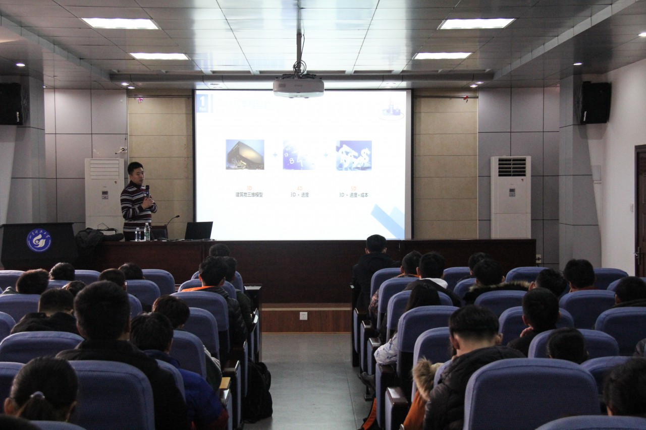 本次宣讲会以“基于思维共享理念的BIM发展之路”为主题,许老师从BIM的概念与特点、BIM的发展、BIM的未来和BIM的实施等4个部分展开讲解。首先向大家介绍了BIM的概念,并解释了BIM可视化、协调性、模拟性、优化性和可出图性的5大特点。接着,他从国外角度、国内角度和国家政策角度介绍了BIM的发展历程,着重强调了国家对BIM技术运用的重视,由此指出了BIM的发展方向和辉煌前景。最后,许老师基于HIM的P-BIM标准和中国BIM发展联盟讲述了BIM的实施体系和BIM技术运用的最终目标,并多次强调了BIM的核心是信息共享与多专业协同设计。许老师引用经典实例,娓娓道来,精彩的讲座让同学们受益匪浅。