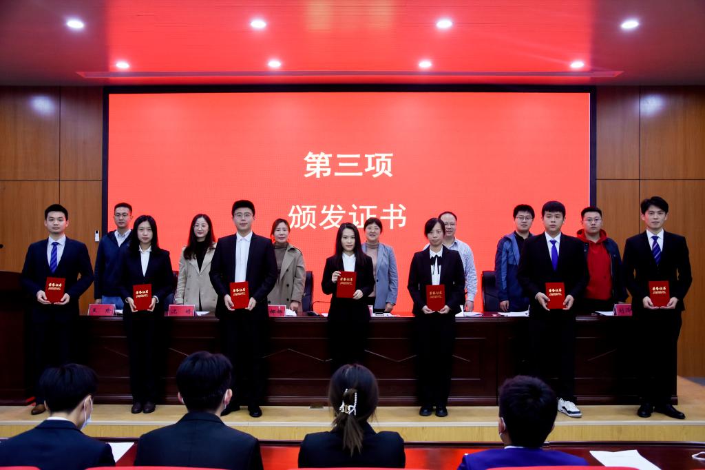 会议伊始,全体起立奏唱国歌。会上,朱统汉宣读了《关于表彰2020-2021学年MK体育员工组织优秀员工干部、优秀志愿者和“三下乡”社会实践优秀团队、优秀个人的决定》和《MK体育员工组织2021-2022学年员工组织干部名单》,与会领导、老师为获奖代表颁发荣誉证书。随后,2020-2021学年员工会执行主席王江浩对一年来公司员工会的工作做了简要回顾与总结。现任员工会执行主席高宁就未来一年员工组织的工作设想作了发言,表示新一届员工组织会以饱满的工作热情、崭新的形象,全心全意为同学们服务,用实际行动递交上一份令人满意的答卷。2020-2021学年研究生会执行主席韩一鸣总结了研究生会上一学年的工作,现任研究生会执行主席殷振就新一学年研究生会工作做了展望。