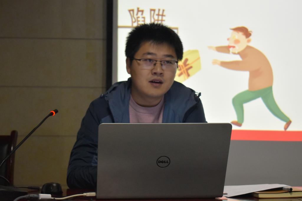 近期网络诈骗案件频发,诈骗分子通过各种途径来进行诈骗。为了使大家更加清楚地了解诈骗分子的诈骗手段,刘超详细讲解了“猜猜我是谁”、“虚假中奖”、“恐吓敲诈”等14种常见的诈骗方式和“网购退款”、“兼职刷单”、“病毒链接”这三种新型诈骗手段。随后,刘超从“电信诈骗的概念”、“电信诈骗的起源和组成”、“常见的电信诈骗手段”和“如何预防电信诈骗”四个方面具体介绍了“电信诈骗”的相关知识。刘超在培训中强调,“青马工程”学员们要积极主动加入反诈宣传志愿者队伍中来,借助班会、团日活动等开展渗透式反诈宣讲,逐步把反诈防骗内化为行动自觉,带动班级同学共建“无诈校园”。