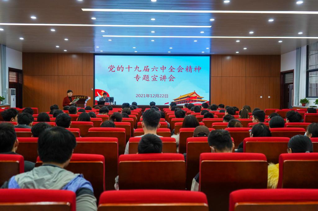 12月22日下午,MK体育在J15-136报告厅举办党的十九届六中全会精神宣讲会。会议邀请“山海泉”理论宣讲团成员、马克思主义公司副教授贾强老师进行宣讲。公司党委副书记高静主持宣讲会,公司全体辅导员老师及员工代表参加会议。
