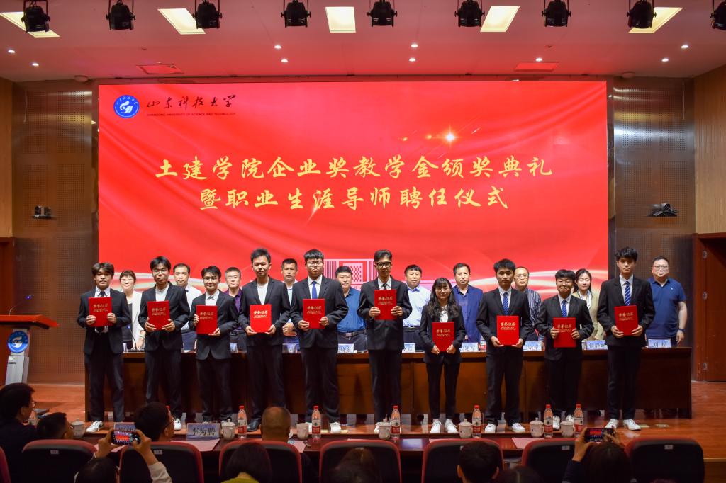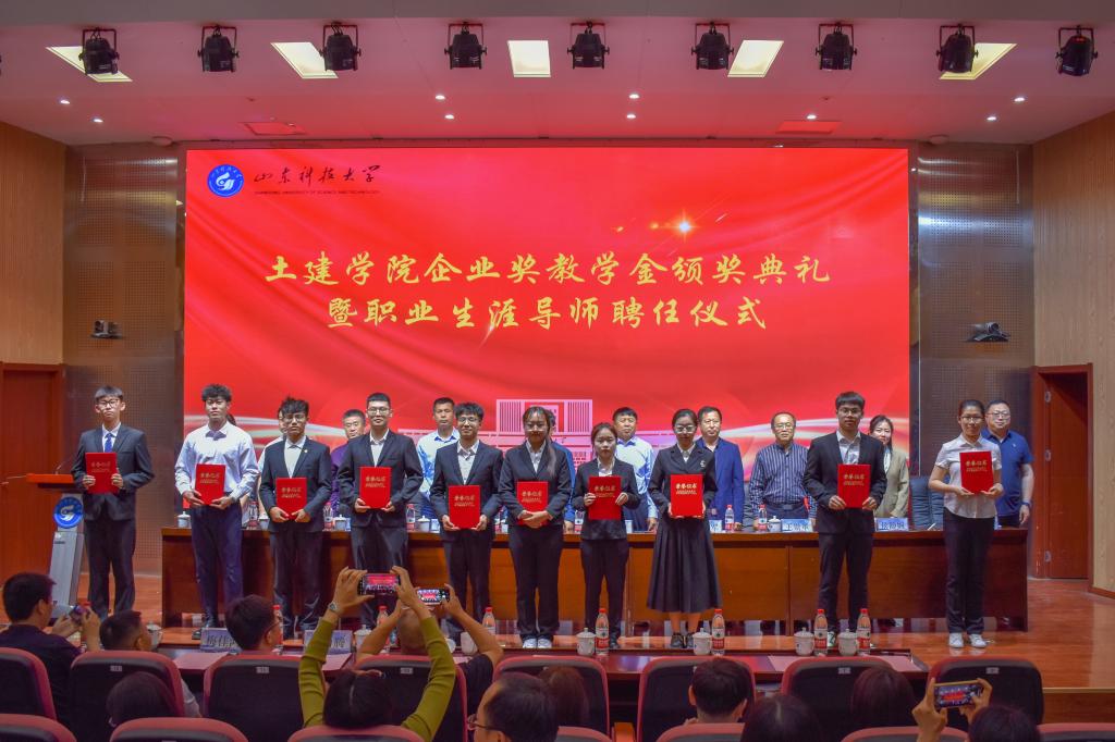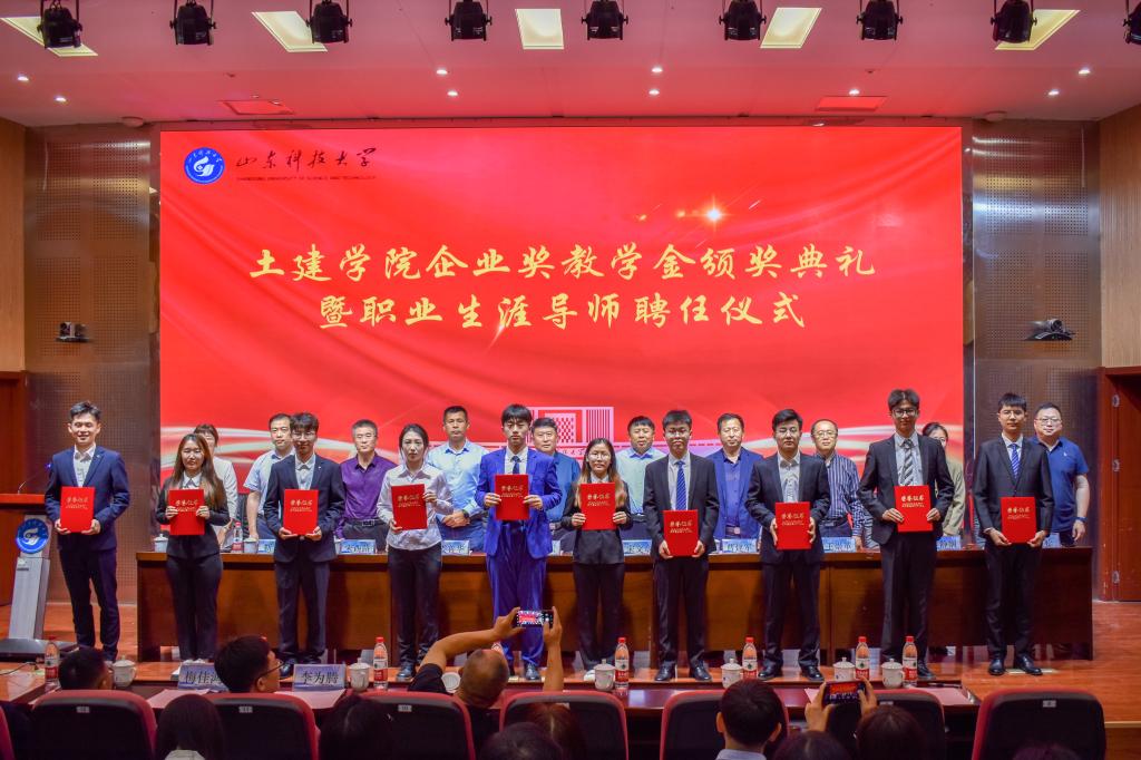 5月24日,MK体育企业奖教学金颁奖典礼暨职业生涯导师聘任仪式在J9-144报告厅举行。烟台平安信息工程职业技能培训公司董事长宋文章,日照市政集团常务副总经理娄善华、爆破公司经理焦淑君,山东省路桥集团青岛分公司党总支书记、副总经理曹建军,党总支委员、总工程师梅佳鸿,公司合作发展处处长王晓东,员工工作处副处长靳凯,校团委副书记侯静娴,研究生院副经理刘松,及MK体育师生代表参加了本次颁奖典礼。典礼由公司党委副书记高静主持。