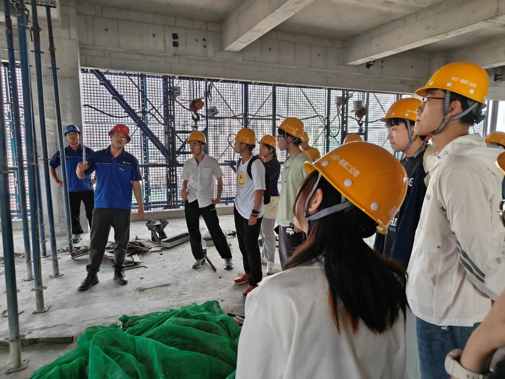 随后,一行人来到中交一航局二公司在建项目,学员们进入施工一线,亲临现场感受氛围。通过近距离观察研究爬架样板、铝模支撑、屋面样板、砌体样板等各种建设样板,对施工的各个模块有了更好的理解与工作思路,明白了其中蕴含的科学依据和理论支撑。通过引导员实践经验的传授和对建设工作进一步的讲解,培训班成员学习到各种工程的施工原理、施工流程以及后期维护工作如何开展等一系列根本性问题。学员马佳丽表示:“通过此次学习。只觉肩负重任,未来仍需努力。造桥建房,样样有其奥妙。作为土建学子,应当努力学好专业知识,传承大国工匠精神,学无止境,在新时代新征程中,高度重视自我完善发展,吃苦耐劳,为建设强国贡献自己的力量。”
