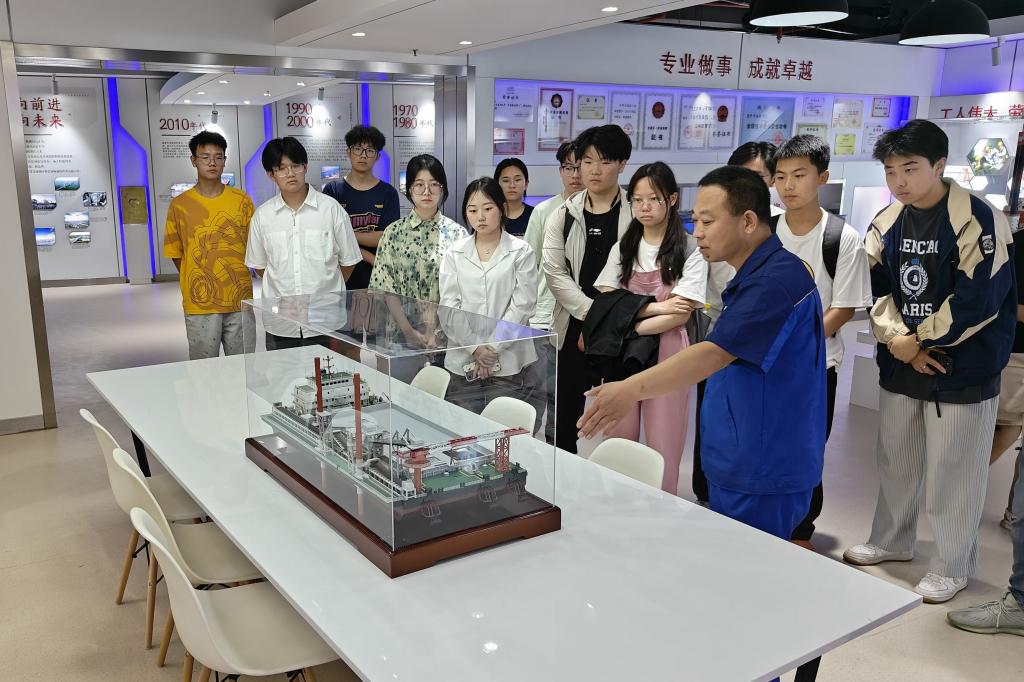 学员们随中交一航局二公司人力资源部、党委组织部部长高作光一起参观了大国工匠工作室,全国首批大国工匠获得者管延安为学员进行具体讲解与交流。管延安用生动的语言讲述了港珠澳大桥等重点工程建设,讲到沉管隧道施工,他说“岛隧工程建设难度大,技术最复杂,施工历时7年,33节沉管,每节都有180米长、8万吨重,在每一件设备、每一颗螺丝安装完后,都要反复检查三至五遍才放心。”现场掌声频频,学员陈钰滢表示“当管师傅脱口而出每一个构件的精准尺寸与精确误差时,我认识到自己平时不以为然的小小数字在工程建设上容不得丝毫马虎,管师傅的工匠精神是我们学习的榜样,以后我一定在学习生活中更加细心严谨。”