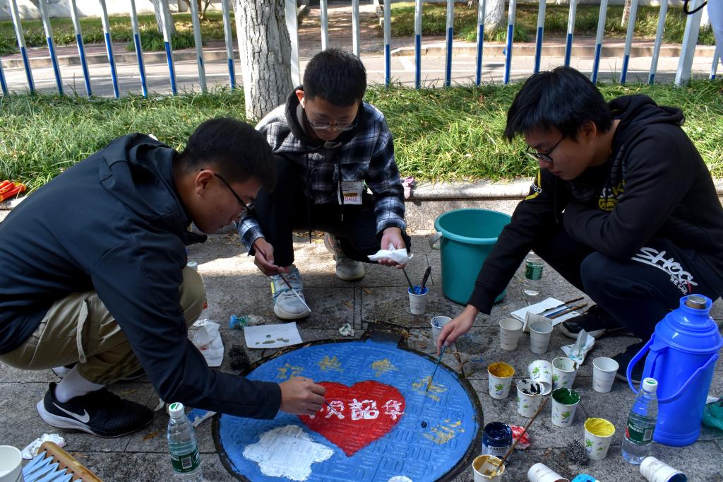 10月14日上午,MK体育在风雨操场西侧举办井盖彩绘活动,员工们以精彩的创意为井盖增添绚丽色彩,用手中的画笔打造校园特色景观。