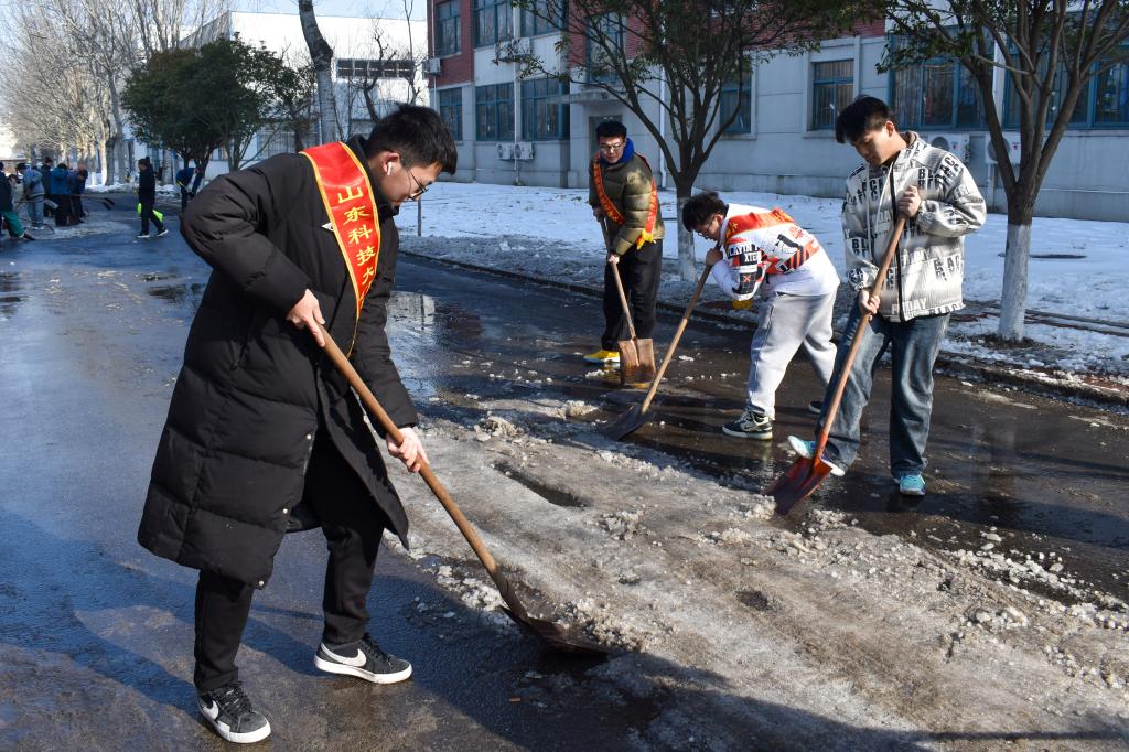 “弘扬雷锋精神,志愿奉献青春”主题志愿服务月系列活动(一)——公司青年志愿者“清冰除雪”,寒日扫出校园“暖心路”
