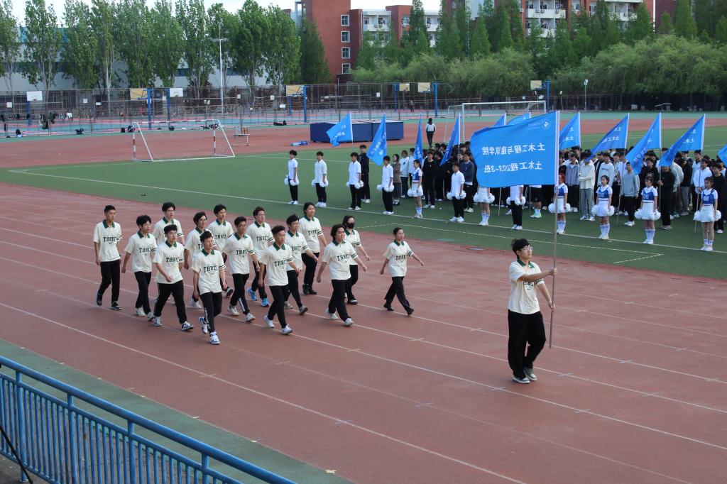 在全体师生的共同努力下,本次运动会圆满结束。比赛过程紧张刺激,运动员们勇往直前,取得了优异成绩。其中,建环22-1班、土木22-3班、建环22-2班、土木22-8班、建筑22-3班、城空22-2班分别获得2022级团体总分前六名,建环23-1班、土木23-2班、城空23-1班、土木23-6班、土木23-7班、土木23-3班分别获得2023级团体总分前六名,硕研22-2班、23-1班、23-3班获得硕研团体总分前三名,土木23-1班、建筑23-1班、建筑23-2班、建环23-1班、城空23-2班、建筑22-1班获得“精神文明奖”。员工工作办公室主任、团委书记王贝贝,团委辅导员老师张翌、刘泽群、王瑜分别为获奖班级颁奖。