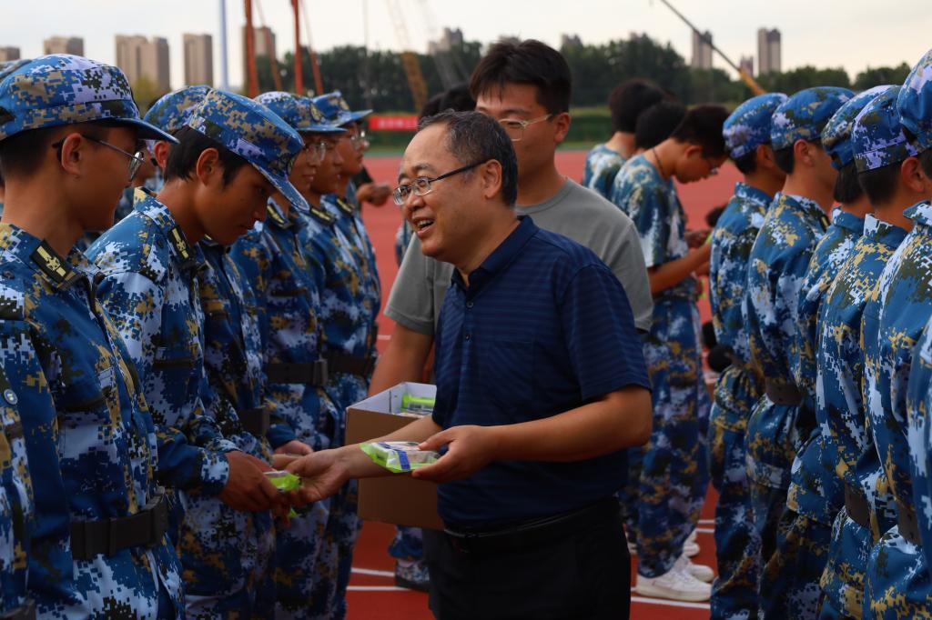 下午,公司党委书记宋西路,经理王崇革,员工工作处副处长孔环,公司党委副书记、副经理高静,副经理李为腾、秦哲前往军训场地慰问军训学员,宋西路在现场与新生们亲切交谈,了解他们的军训情况。孔环向参训的学员和教官们致以节日的问候,并对他们在军训中的努力和付出表示了高度的赞扬。