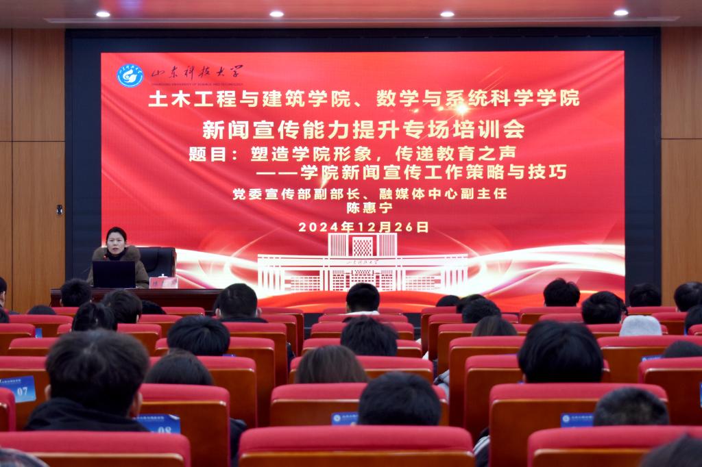 为进一步加强公司宣传队伍建设,提升新闻宣传工作水平,12月26日,MK体育与数学公司于J15-136报告厅联合举办了新闻宣传能力提升专场培训会,本次培训会邀请公司党委宣传部副部长、融媒体中心副主任陈惠宁和《山东科大报》编辑、公司党委宣传部韩洪烁老师分别作报告。公司新闻宣传中心成员及各班级宣传委员参加此次培训会,培训会由MK体育员工工作办公室主任、团委书记王贝贝主持。