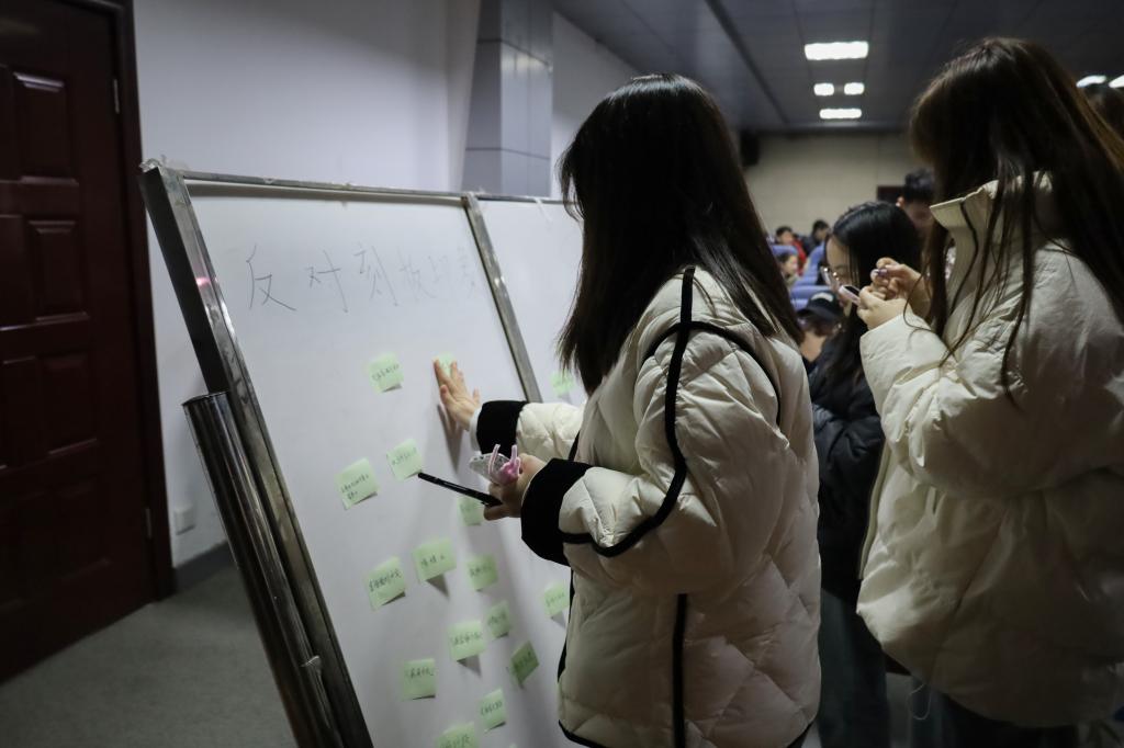 活动现场,同学们创意十足,运用五彩扭扭棒精心制作花束,将传统绒花工艺与现代设计结合,创作出兼具艺术性与实用性的手工艺品;员工自由选取彩泥,通过揉捏、塑形、上色等步骤,将一块块普通的粘土变成了栩栩如生的花卉、美味可口的蛋糕模型等作品,以此表达祝福与敬意。同时,在展板区域,大家踊跃上前,在便利贴上写下自己对于性别平等的理解、对女性力量的赞美以及对消除性别刻板印象的倡议,随后将其贴在展板上,覆盖带有女性刻板印象或偏见的标签。这一看似微小的举动,却具有深远意义,它象征着打破固有观念,鼓励大家从内心深处接纳和认可女性在各个领域所展现出的无限潜力。