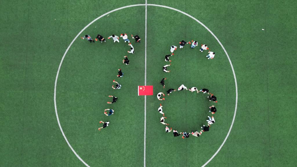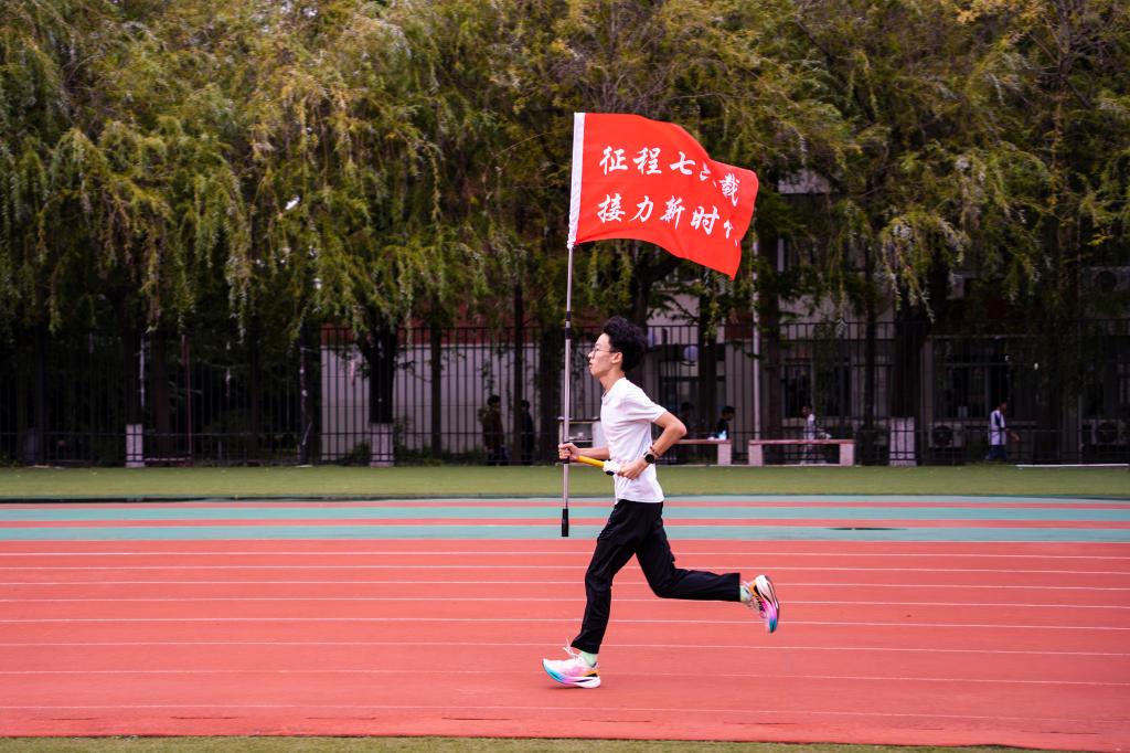 活动伊始,庄严的国歌奏响,全体人员面向国旗行注目礼,高唱国歌,工作人员有序奔向预定位置,以身躯为笔,以绿茵为卷,用充满活力的身影,精准地汇合、排列,瞬间定格为一个具象而辉煌的图案——“76”造型赫然呈现。随后,MK体育研究生辅导员史卫平发表致辞,她指出,今天的接力跑活动,既是对历史的致敬,也是对未来的展望,希望同学们能将爱国之情、强国之志转化为报国之行,奔跑出属于自己的青春。本次接力跑从象征1949年新中国成立的起点出发,参赛选手们以400米、800米为赛段依次接力,用脚步丈量热忱,用汗水诠释担当,从1964年第一颗原子弹爆炸成功,到1978年改革开放的伟大转折;从1997年香港回归的民族欢腾、2008年北京奥运会的无上荣耀,再到2020年脱贫攻坚全面胜利的伟大奇迹……选手们奔跑的每一步都凝聚着对祖国的深情告白。