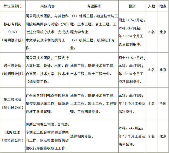 北京瑞力通地基基础工程有限责任公司联合北京瑞明建筑设计院有限公司 2025 届应届毕业生校园招聘简章