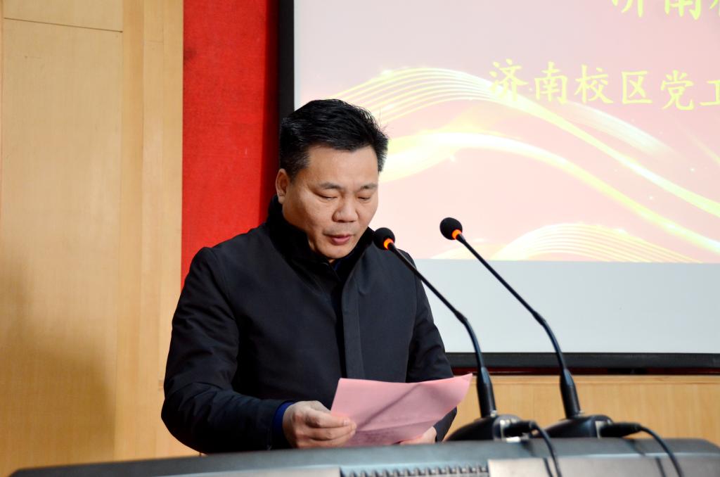 单德勇向大会汇报员工会筹备情况 济南校区党工委副书记贾长响宣读《MK体育济南员工会章程》
