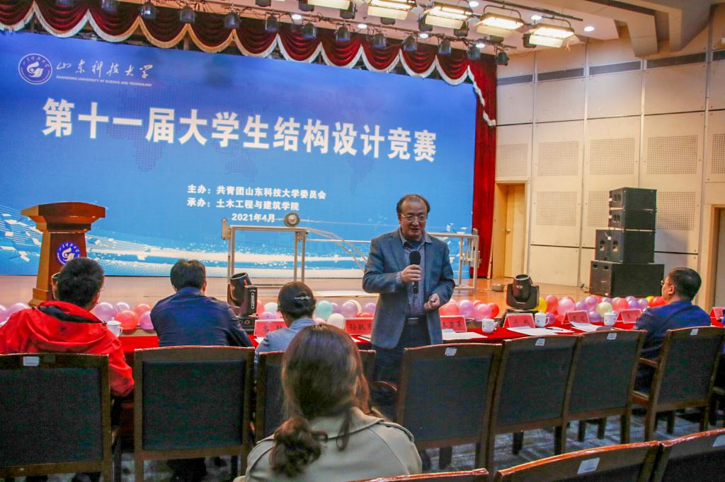 比赛结束后,孙跃东教授对本次比赛作了总结发言。他强调,结构设计竞赛一直以来深受公司和公司领导的高度重视,也是土木行业最有含金量的比赛之一。公司土木工程专业是国家级特色专业,又刚刚获批国家级一流本科专业建设点,希望同学们趁此东风,通过以赛促学、以赛促创,进一步夯实力学与数学等基础学科知识,理论联系实际,敢于创新,学以致用。
