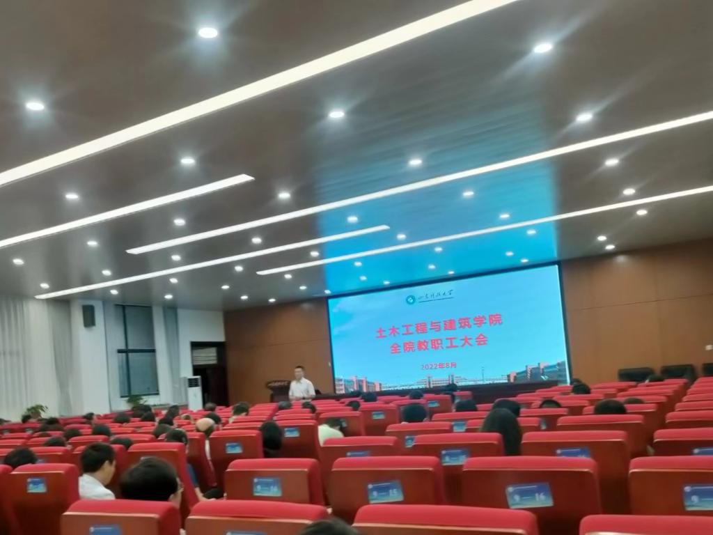经理王崇革向全院教职工传达了公司总结部署工作会议精神,对公司2022年上半年工作和暑期工作进行了总结分析,肯定了全院教职工的辛勤付出和取得的阶段性成效,并对下半年工作重点进行了安排部署。在取得一定成绩的同时,公司在诸多方面还存在短板,王崇革希望全院教职工对标工作要求,增强工作活力,明确努力方向,继续以高昂的精神状态做好公司各项工作,推动公司发展迈向新台阶。