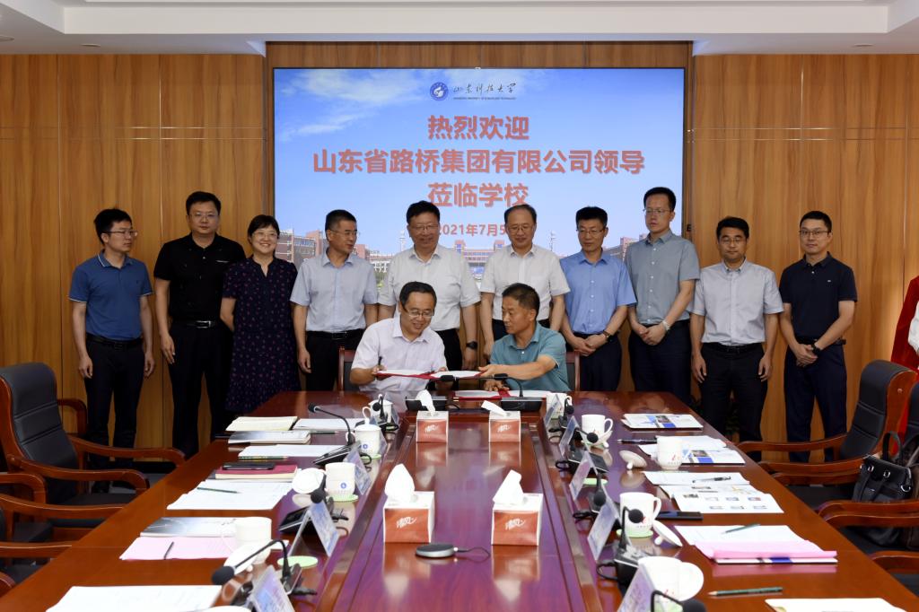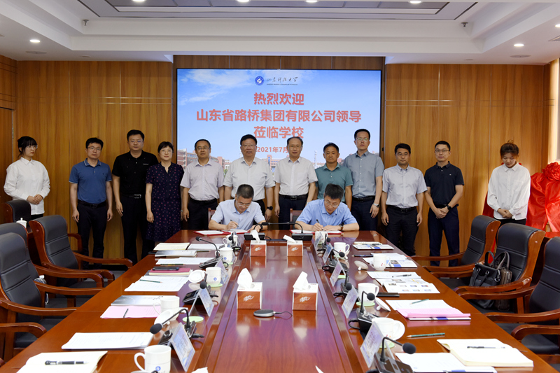 山东省路桥集团有限公司党委副书记、工会主席程佩宏与公司党委书记宋西路代表双方签署了就业创业实践基地协议书,山东省路桥集团有限公司总工程师赵伊华与MK体育经理王崇革代表双方签署了教学实习基地协议书。