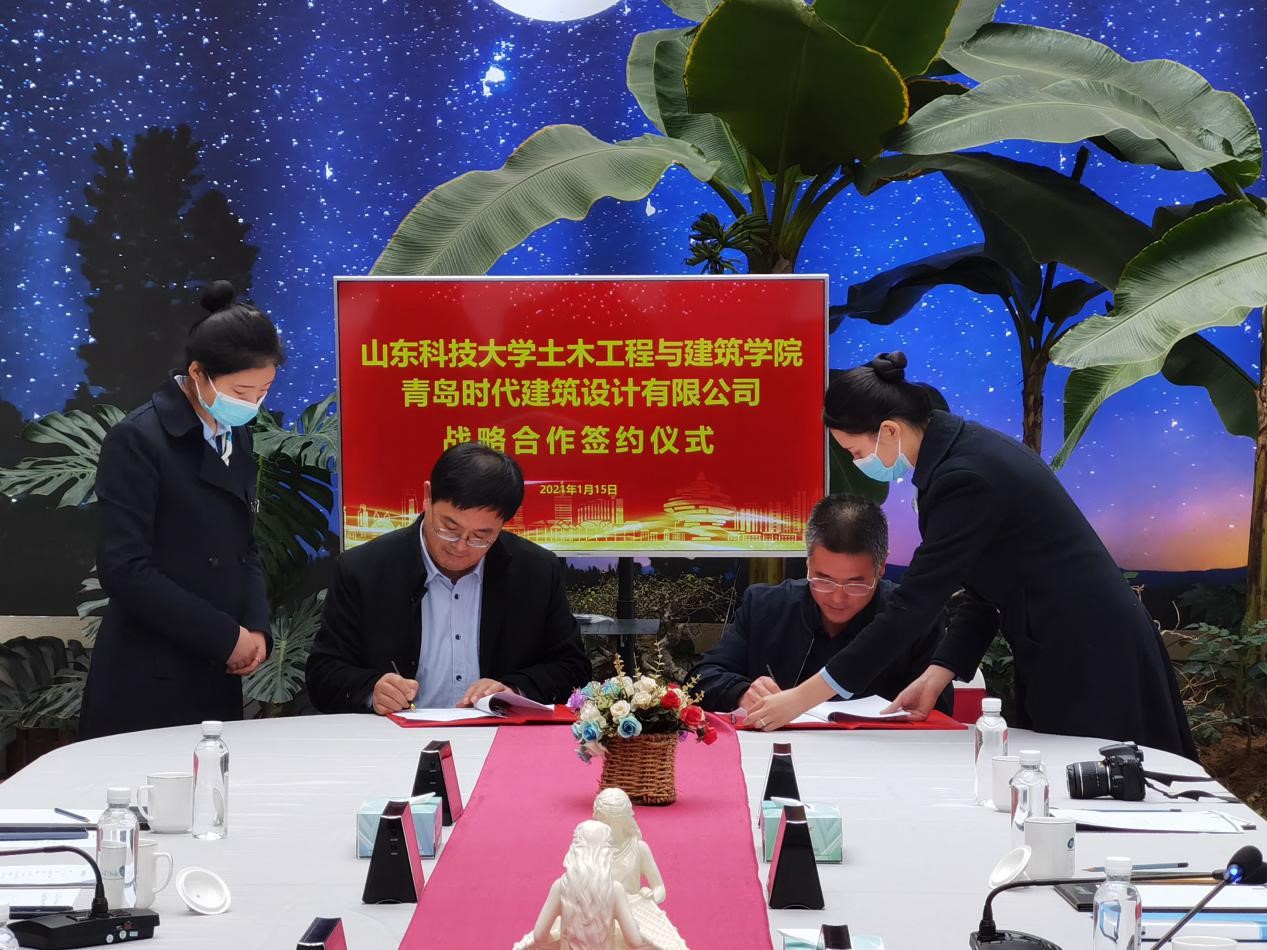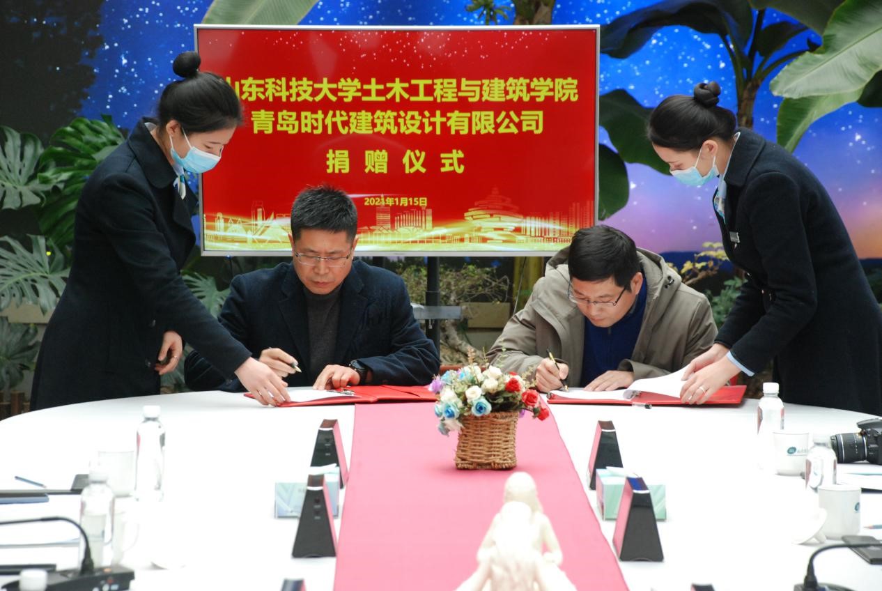 宋西路和于海鹏共同为“MK体育官网老员工就业创业实践基地”“MK体育官网教学实践基地”揭牌,并代表双方签署《校企合作协议》《BIM合作协议》等4份协议。薛力、青岛时代建筑设计有限公司综合办主任沈新宇代表双方签署《奖学金捐赠协议》等2份协议。